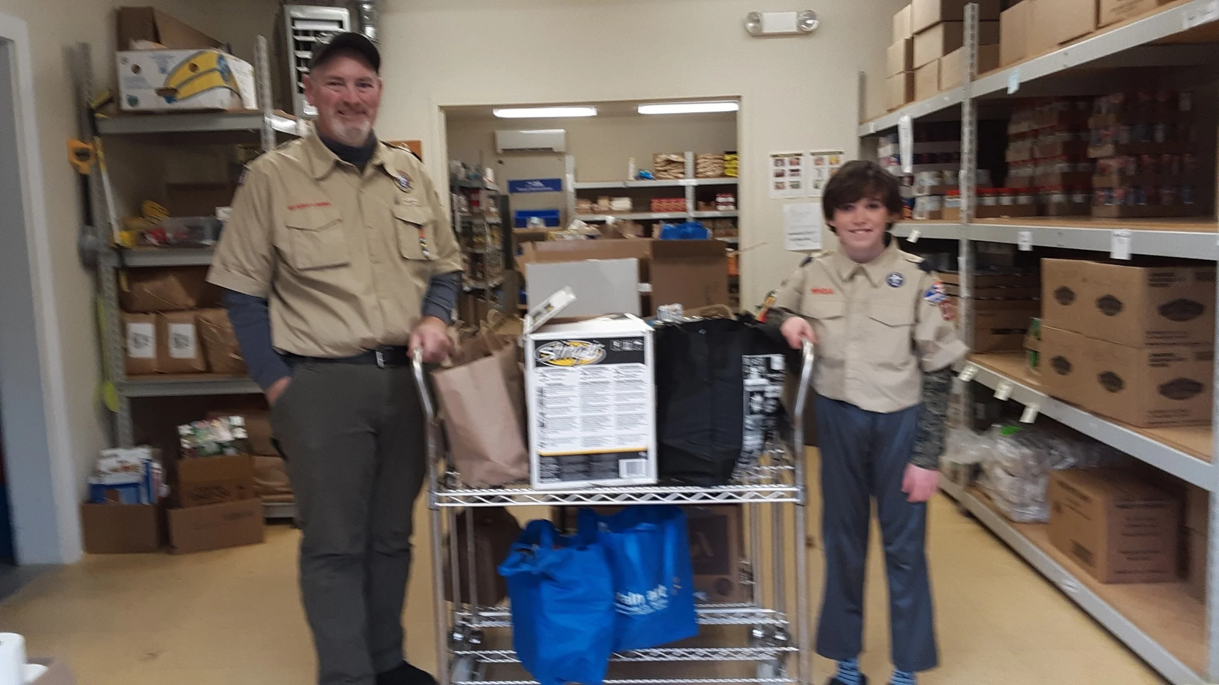On Sun, Nov 19th, local Cub Scout Troop 200 arrived at our door with another table load, and more, of boxes of food. Twelve of their eighteen members, ranging in age from Kindergarten to 5th grade, were able to participate in this food drive which begins with going door to door leaving “door tags” requesting food. The following week the scouts returned to these homes to collect food that was not already dropped off at the First Congregational Church in Camden, which has been sponsoring the Cub Scout troop for several years. The troop went above and beyond in their effort by date checking each item which is greatly appreciated by CACFP volunteers.